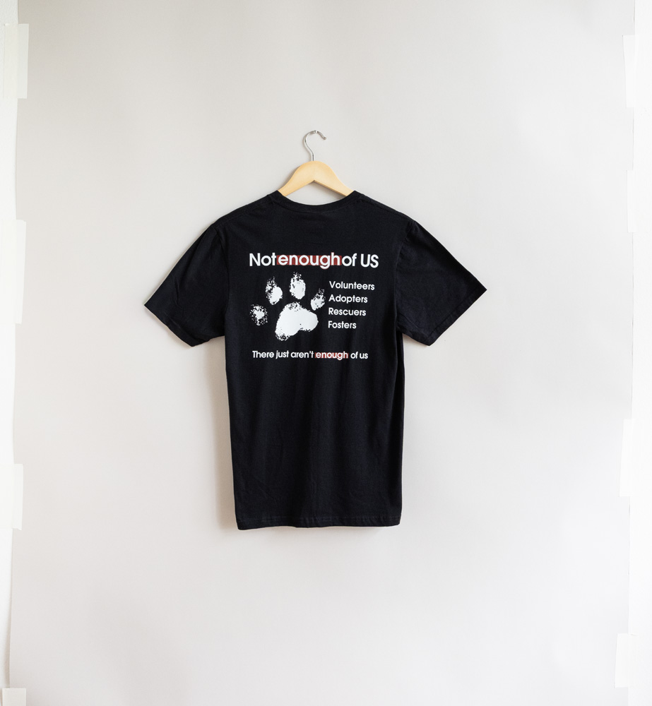 Not Enough of Us is not just a clothing line — it’s a full brand of merchandise designed to fund rescue filmmaking and support the heroes saving cats and dogs across America.